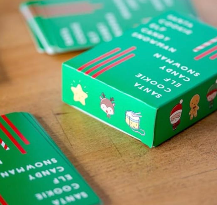 Card games: We love a game night in our house and you can see my above comment for seasonally-themed fun. Both my kids are already obsessed with Taco Goat Cheese Pizza, so this holiday version will amp it up.